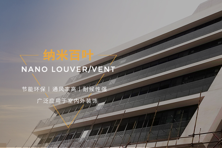 公司主營(yíng)的納米百葉、納米網(wǎng)格、空調(diào)出風(fēng)口納米百葉、欄桿扶手、高聚碳晶板(彩木板)、三州瓦等綠色建材產(chǎn)品廣泛應(yīng)用于建筑外墻、室內(nèi)外裝飾、園林景觀(guān)等,在市場(chǎng)應(yīng)用中獲得良好贊譽(yù)。